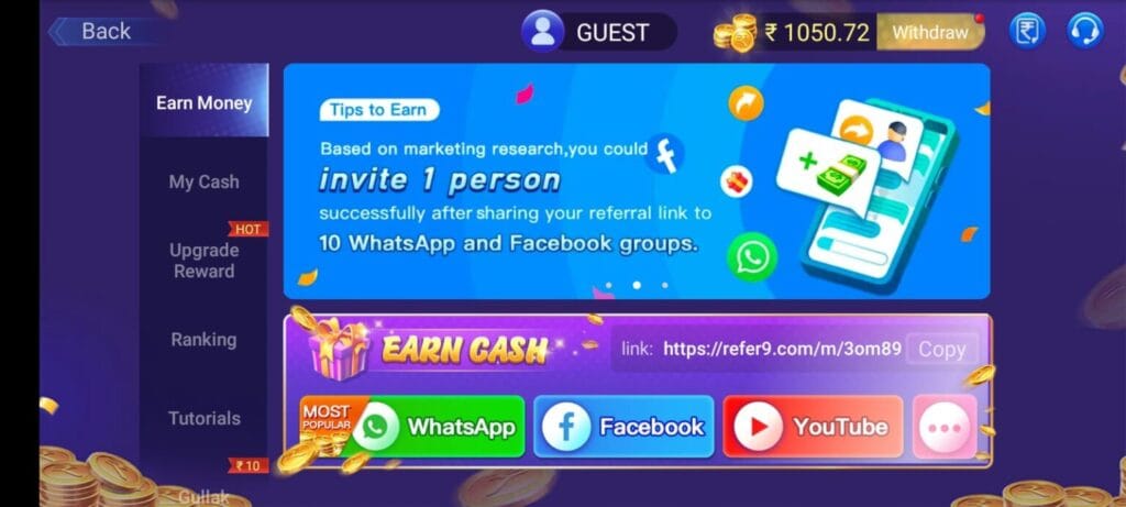 If you want to earn extra money without any risk then Refer and Earn service of Teen Patti Master 2024 can prove to be very beneficial for you. Because the money earned by taking advantage of this feature can also be transferred to the bank account. If you have a huge fan base on social media then you can earn thousands of rupees a month through this. To earn under this service, follow the process given below.